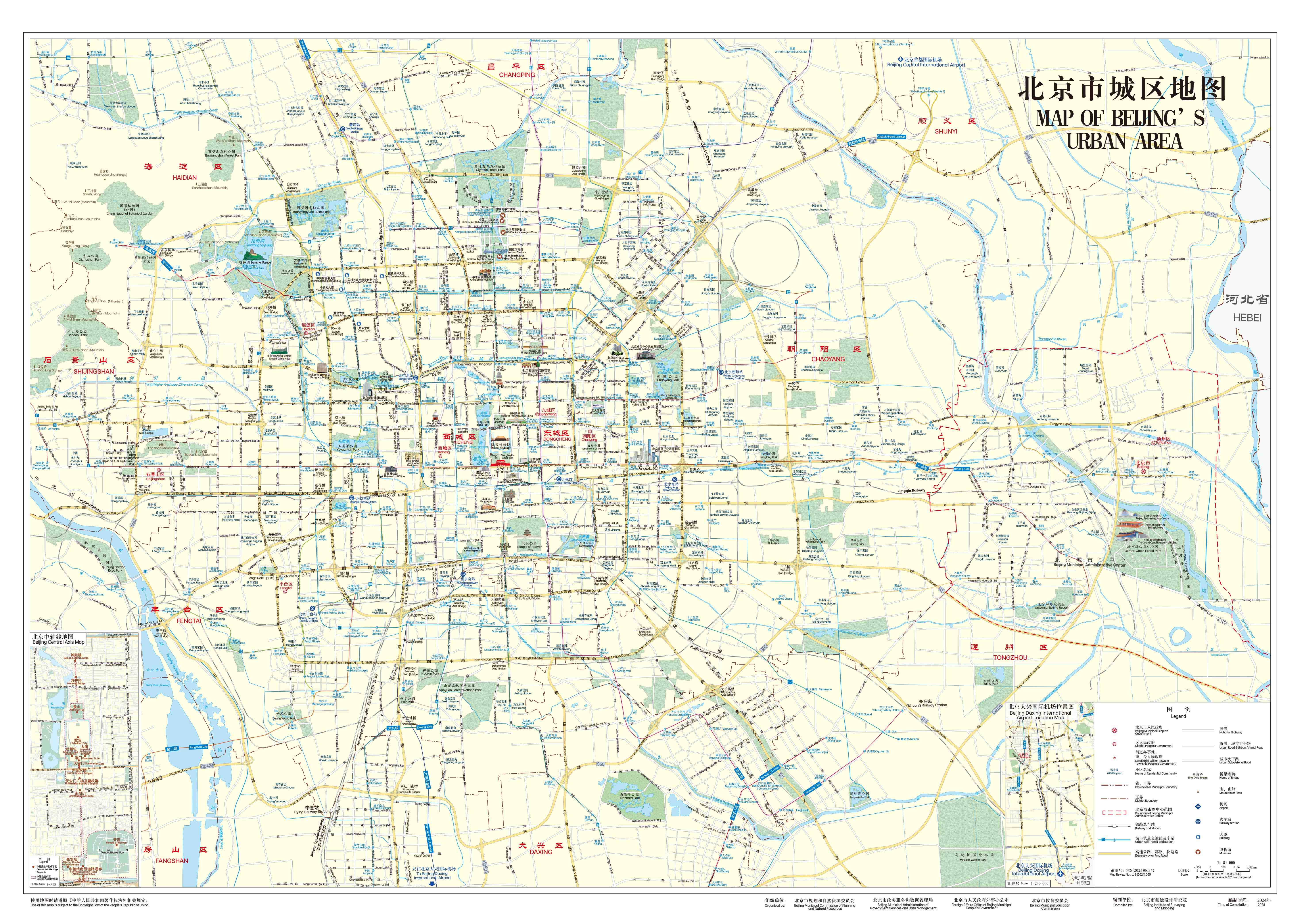 Printed maps are also available, including a map of Beijing, a map of Beijing's urban area, and a map of the capital's core area. The printed maps feature locations frequented by foreigners, such as airports, train stations, and tourist destinations. They also highlight locations of historical and cultural interest, such as the Beijing Central Axis and other World Heritage Sites. The electronic versions of these maps can be downloaded free of charge from the website of Tianditu Beijing.