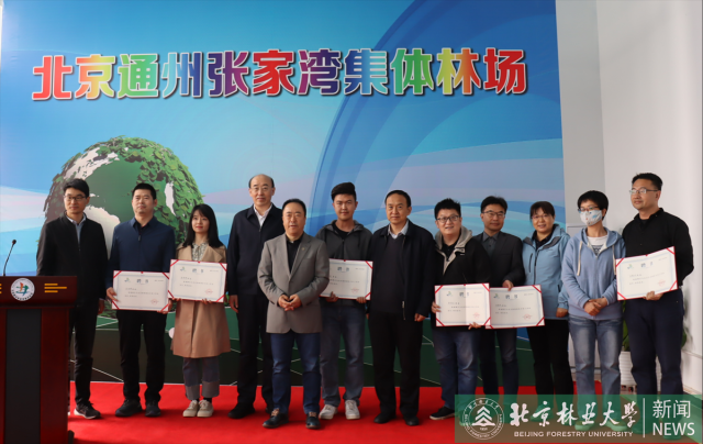 The ceremony was attended by the relevant leaders of Division of Science and Technology of BFU, Ministry of Social Services and Integrated Research of BFU, Beijing Academy of Agriculture and Forestry Sciences, Beijing Scientific Research Institute of Landscape and Afforestation, and Forestry and Park Bureau of Tongzhou District People's Government of Beijing Municipality.