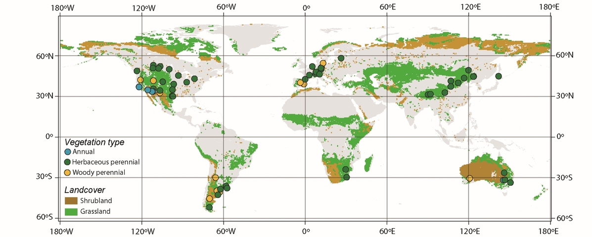The global geographical distribution of experimental sites.