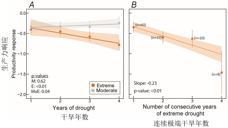 Impact of drought duration on productivity response under moderate and extreme drought.