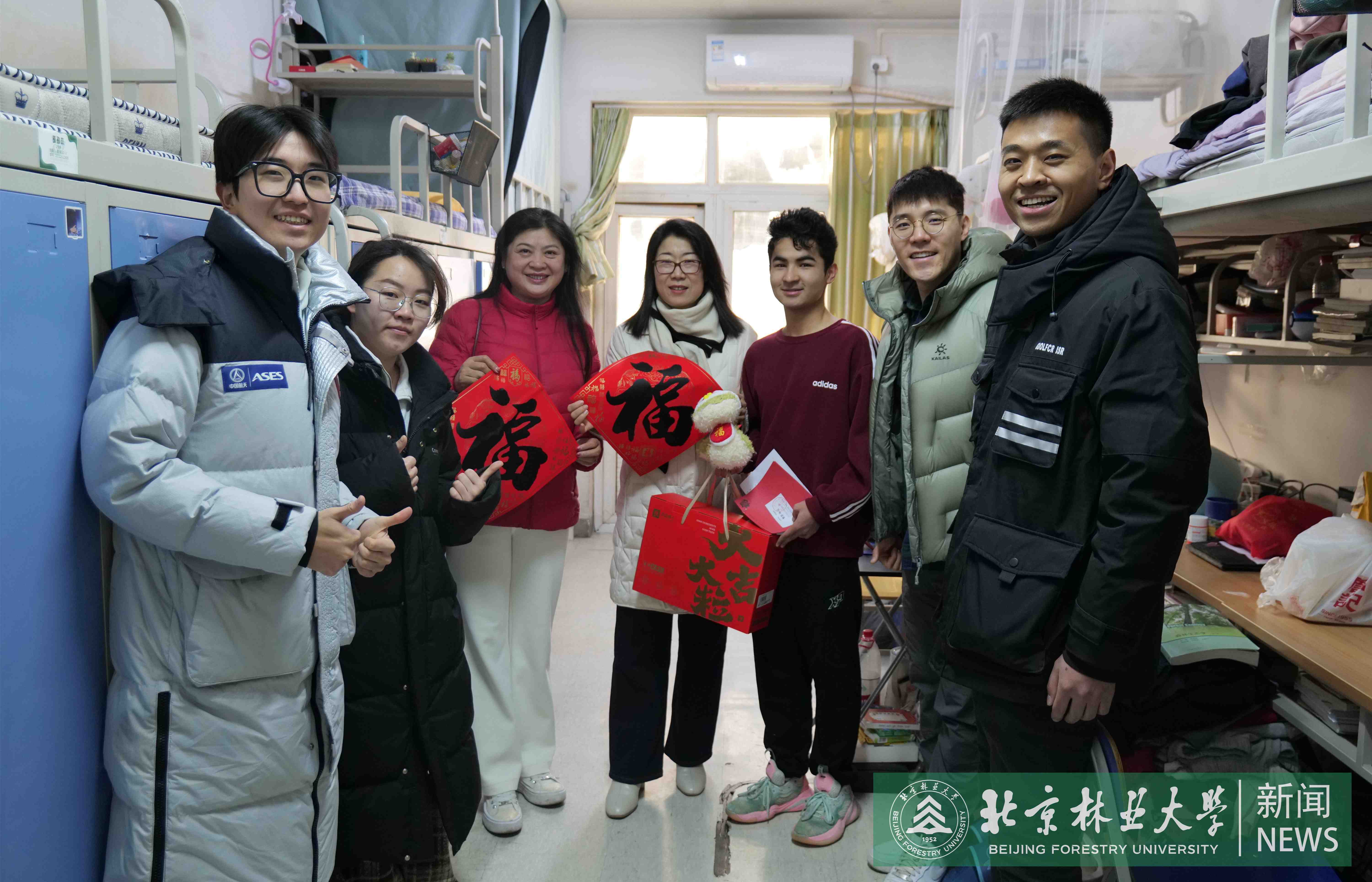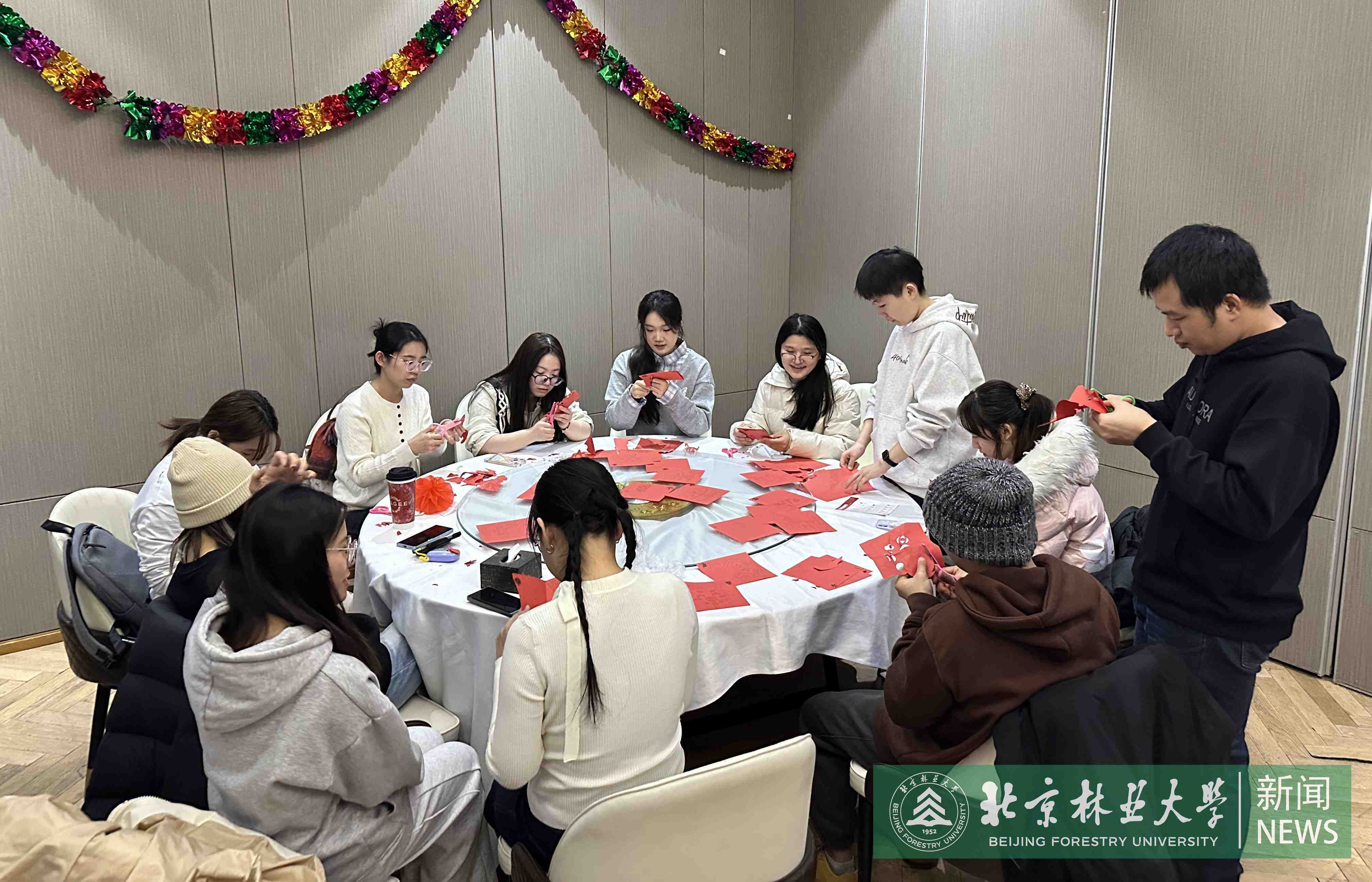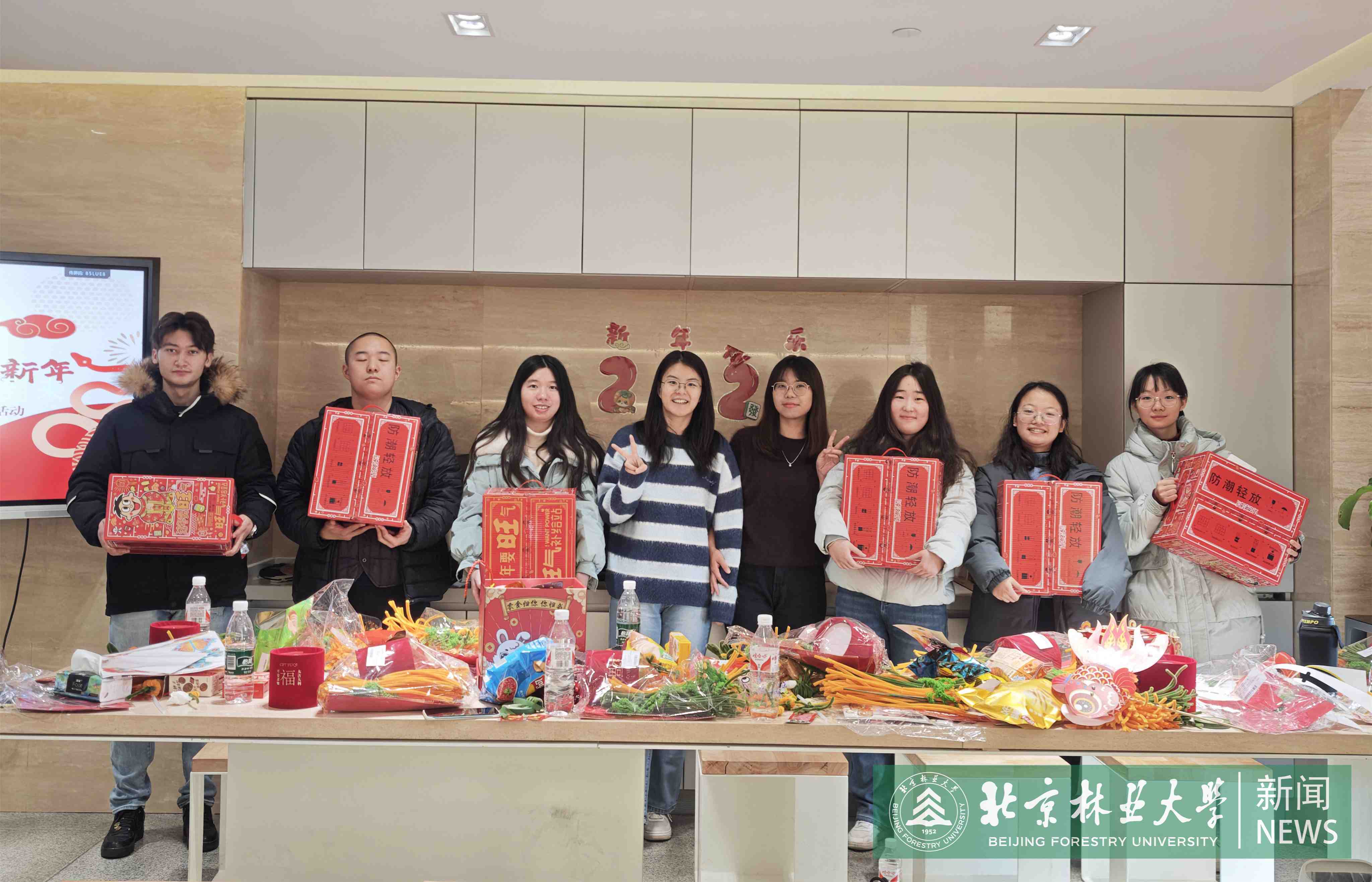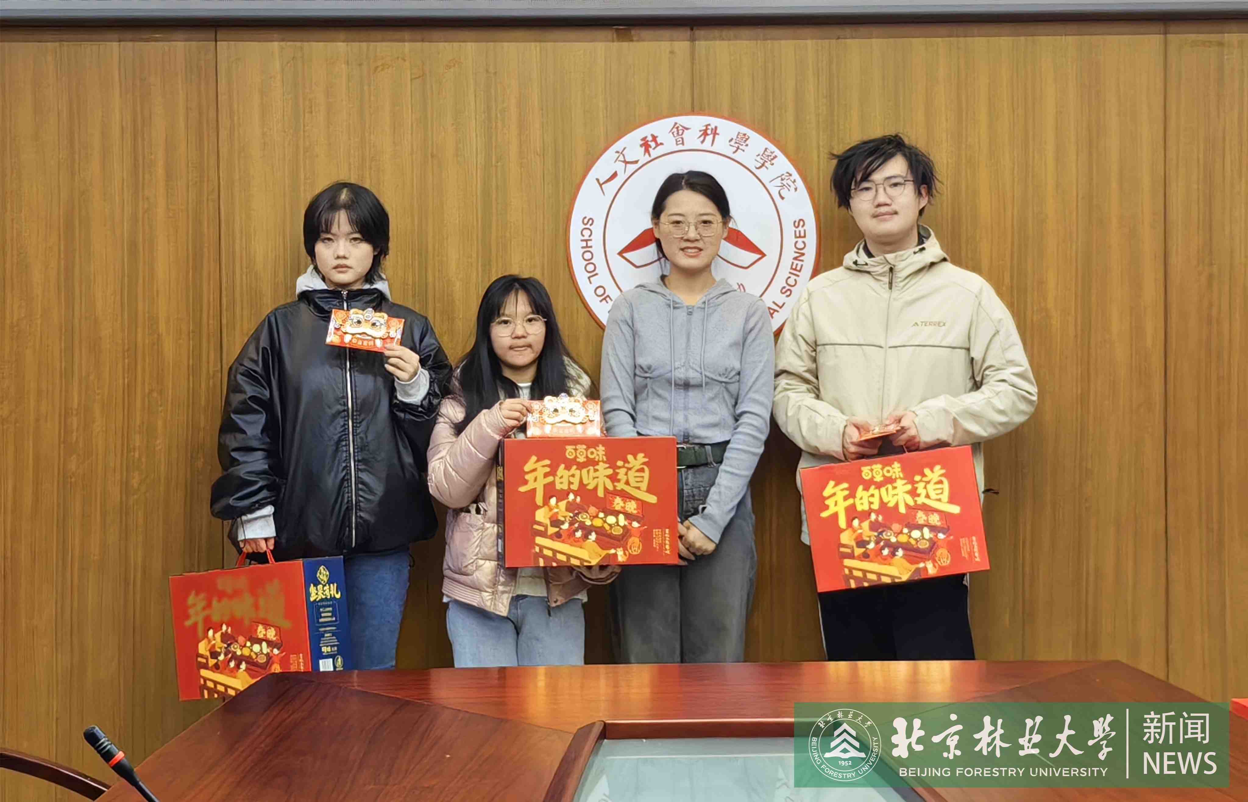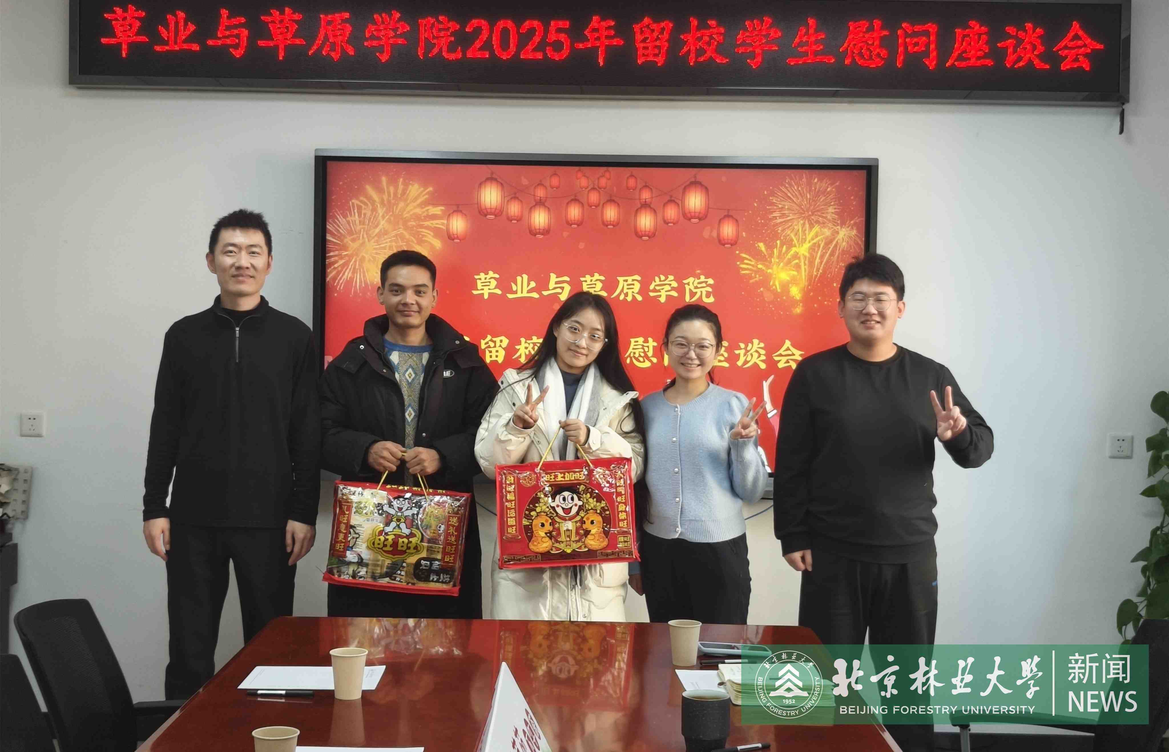As the New Year approached, Beijing Forestry University (BFU) arranged a get-together for students remaining on campus throughout the holiday duration.Vice President Li Xiong, along with representatives from the Student Affairs Office, Security Department, and academic schools, convened with students to exchange holiday greetings and discuss winter break arrangements.