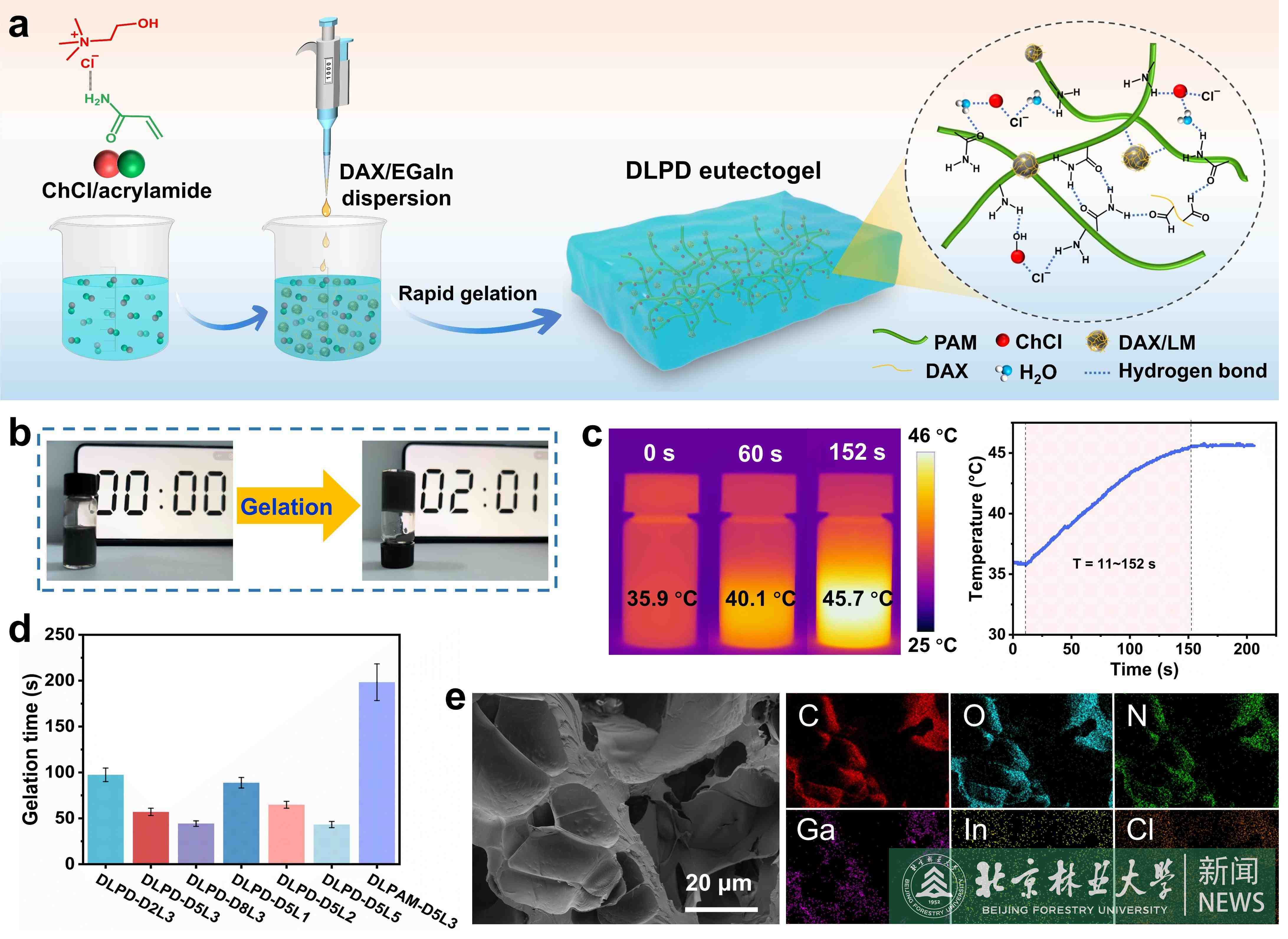 A research team led by Professor Bian Jing from Beijing Forestry University's College of Material Science and Technology has pioneered a sustainable eutectogel production method, featured as a cover paper titled "Conductive eutectogels fabricated by dialdehyde xylan/liquid metal-initiated rapid polymerization for multi-response sensors and self-powered applications" in ACS Nano (IF=15.8). This innovation transforms industrial xylan byproducts into high-performance flexible electronics materials through green manufacturing processes.