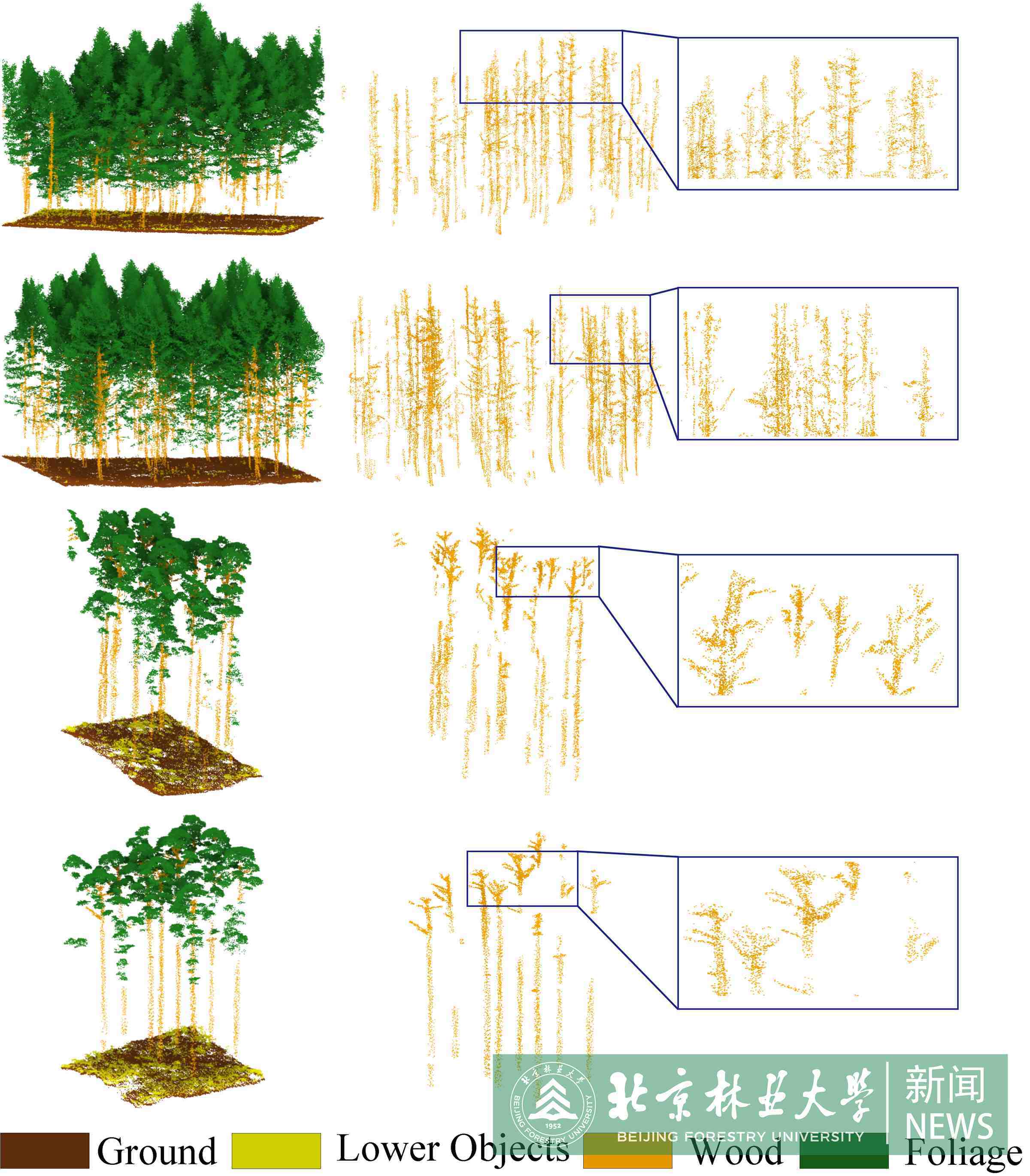 A research led by Associate Professor Lu Hao from Beijing Forestry University's School of Information Science and Technology has developed Sen-net, an AI-powered 3D point cloud understanding framework for forest ecosystems, published in Remote Sensing of Environment (IF=11.1) in the title of "Towards a point cloud understanding framework for forest scene semantic segmentation across forest types and sensor platforms". The study, conducted with China's Academy of Forestry and Switzerland's WSL Institute, introduces a cross-platform solution for accurate vegetation classification across diverse forest types.