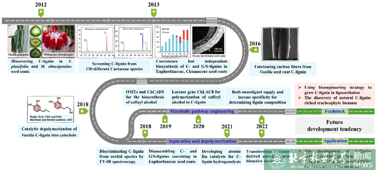 Lately, Professor Song Guoyong and his team published a review paper entitled “The Temptations from homogeneous linear catechyl lignin” in the top journal Trends in Chemistry (IF="22.448)." This paper reports the latest achievements in the research of C-lignin in the past ten years.
