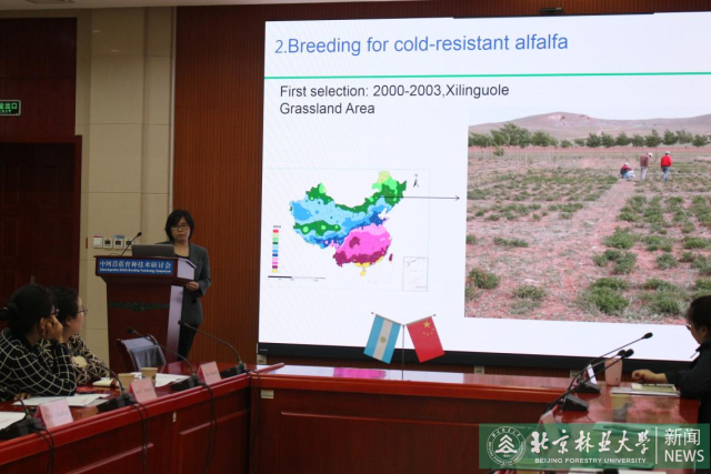 In the report, Wang Tiemei introduced the research progress of alfalfa variety breeding in Beijing Forestry University, focusing on the breeding methods of cold-resistant varieties, the evaluation of fall dormancy, disease resistance identification results, planting division and promotion, etc.