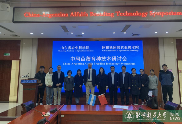 Recently, the signing ceremony of China-Argentina Forage Breeding Cooperation Agreement and China-Argentina Alfalfa Breeding Technology Seminar was held in Shandong Province. Daniel Basigalup, a renowned world famous alfalfa breeder, who is a professor of National Institute for Agricultural Technology (INTA) and the president of the Second World Alfalfa Congress, and more than 50 experts and scholars from Beijing Forestry University, Chinese Academy of Agricultural Sciences, Qingdao Agricultural University and other institutions attended the meeting. Wang Tiemei, associate professor of School of Grassland Science, was invited to the conference and give a special academic report.
