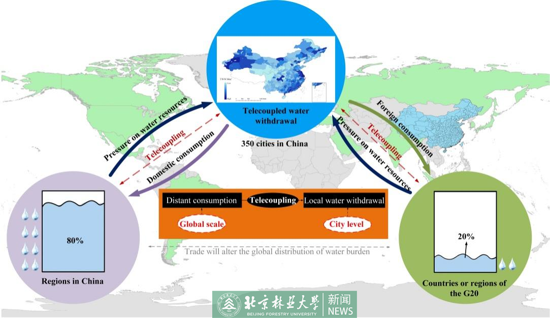 In this study, the concept of “telecoupled water withdrawal” was proposed and a multi-regional input-output model was constructed based on domestic and international nested data. A high spatial and sectoral resolution water use list of 350 cities in China was established under domestic and international remote consumption, and the key countries and regions affecting the pattern of urban water use in China were identified. The research results provide data support for understanding the remote coupling between local water use and remote consumption, and provide scientific reference for the collaborative sustainability of urban water resources management and inter-regional trade in China.
